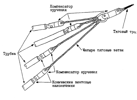 затяжкой кабеля 12.4.7.1 Операции затягивания кабеля предшествует процесс заготовки каналов. Для ПВП кабелеводов заготовка должна осуществляться одним из следующих технических приемов: а) пневмозадувкой троса лебедки; б) вводом стеклопрутка и затягиванием вручную с его помощью троса лебедки (на небольших пролетах) см. п. 12.3 настоящей инструкции. 12.4.7.2 Пневмозадувка троса основывается на посыле по каналу давлением сжатого воздуха поршня, к концу которого крепится трос лебедки. Для герметизации троса на входе в канал применяется специальное вводное устройство (см. рис. 12.4), с тремя функциями: - пропуск троса; - уплотнение отверстия канала; - подключение пневмомагистрали от компрессора. Рис. 12.4 Для каждого диаметра канала и диаметра тросика выпускается определенный типоразмер вводного устройства. Пневмозадувное устройство работает от компрессора. Тип компрессора определяется конкретными требованиями к длине задувки тросика заданной массы. Как правило, для задувки может быть использован промышленный портативный компрессор с производительностью не менее 3 м3/ч и рабочим давлением до 700 кПа (7 кг/см2 ). Скорость задувки должна быть безопасной для троса в режиме размотки и резкой остановки, для чего в пневмомагистрали должно быть встроено регуляторное устройство, а канатный барабан иметь притормаживающее устройство. 12.4.8 Оконцевание кабеля перед затяжкой 12.4.8.1 Перед затяжкой ОК в ПВП кабелеводы кабель должен быть оконцован надежным способом, не вызывающим повреждения кабеля и поверхности канала. 12.4.8.2 В зависимости от конструкции оптического кабеля рекомендуется применять следующие заделки: · кабельные наконечники - для кабелей с металлическим центральным элементом; · кабельные чулки - для всех кабелей, допускающих тяжение только за оболочку. 12.4.8.3 Типоразмеры кабельных наконечников и чулков должны соответствовать диаметрам затягиваемых кабелей. 12.4.8.4 Чулки для ОК должны обладать повышенной гибкостью, по сравнению с чулками для медножильных кабелей, выполняться, преимущественно, из канатов в защищенной пластмассовой оболочке и оказывать распределенное сжимающее давление на кабель при тяжении. 12.4.8.5 При оконцевании кабеля чулком следует: полностью надвинутый к кабель чулок ладонями максимально вытянуть вдоль кабеля и плотно обмотать его хвостовую часть 3 - 4 слоями крепкой изоляционной ленты (непачкающейся снаружи) с захватом участка кабеля на длине 20 - 30 мм и участка чулка на длине 30 - 40 мм. После этого обмотать весь чулок одним-двумя слоями этой же ленты. 12.4.8.6 Перед оконцеванием оптических кабелей с проволочной броней предлагается как вариант произвести следующее: снять наружную пластмассовую оболочку на участке 70 - 80 мм и, отбирая через одну, загнуть половину проволок кольцом в 1 - 2 оборота вокруг остальных. Концы проволок подвернуть внутрь к центру кабеля. 12.4.8.7 При затягивании оптических кабелей с ленточной броней или со стеклопластиковыми стержнями технология оконцевания должна быть выработана по конкретному кабелю с учетом допустимых нагрузок на него и условий прокладки. 12.5 Поршневой метод задувки оптического кабеля в ПВП кабелеводы12.5.1 Этот метод ввода кабеля основан на комбинированной системе привлечения двух тянущих сил: силы затягивания, создаваемой давлением сжатого воздуха на поршень, прикрепленный к кабелю 