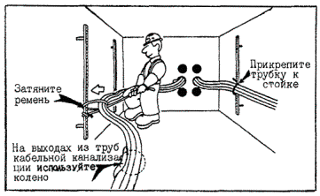 в кабелевод без предварительной установки ловушки на выходном конце, например,