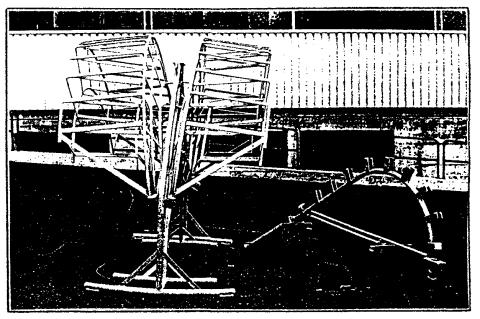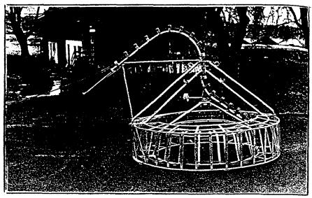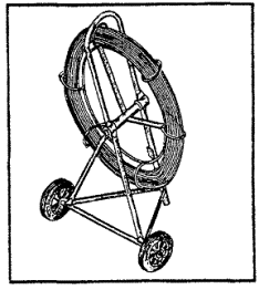 скорость прокладки более 90 м/мин. 12.6.9.2 Перемоточное приспособление "FIGARO" (ФИГАРО) Используется тогда, когда длина вводимого кабеля превышает количество технических единиц кабелевводных устройств "CABLEJET/SUPERJET" и возникает необходимость вести прокладку в двух направлениях или с накоплением кабеля в промежуточном пункте. "ФИГАРО" разработано как подмена технологического приема прокладки кабеля с применением его выкладки "восьмеркой", для выполнения которой требуется значительная площадка и соблюдение условий от загрязнения кабеля. "ФИГАРО" (см. рис. 12.10) представляет собой металлическую корзину диаметром 2,25 м, оборудованную двумя роликовыми дорожками: верхней, неподвижной, направляющей кабель к центральному вводу корзины и нижней, вращающейся и укладывающей кабель кругами по периферии корзины. Подача или отбор кабеля выполняется с помощью кабелевводного устройства "CABLEJET". Рис. 12.10 В зависимости от диаметра кабеля приспособление "ФИГАРО" может вместить: Таблица 12.2