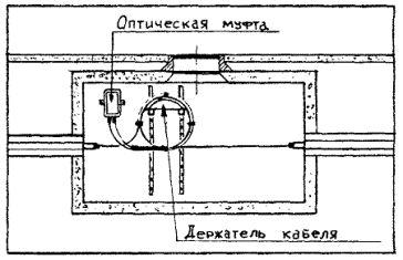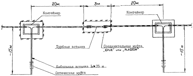 параллельном заложении кабалеводов Рис. 9.2. Размещение контейнера оптической муфты в стороне от кабельной линии на участке соединения строительных длин трубок Рис. 9.3 Размещение контейнера оптической муфты в стороне от кабельной линии с применением вставок