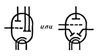 и) комбинированной электронной лампы при раздельном изображении систем электродов с внутренним разделительным экраном (вывод экрана показывают на одной половине изображения)