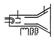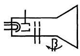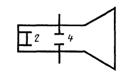 а) с эмиттирующим основанием, с предварительным подогревом, с постоянным магнитом, соединение с волноводными входом и выходом через отверстие связи