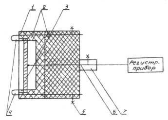 ТЭП, регистрирующий температуру нагрева образца; 7 - держатель ТЭП с винтом Образец крепится к керамическому элементу игольчатыми держателями (поз. 4, рис. 2) диаметром 1,5-2,0 мм, обеспечивающими точечный контакт с образцом. Для предупреждения прогрева образца через торцевые поверхности огнезащитного покрытия его помещают в углубление в керамическом элементе высотой (144±2) мм, шириной (84±2) мм и глубиной 2-3 мм. Температура необогреваемой поверхности образца фиксируется ТЭП (поз. 6, рис. 2), контакт которого с поверхностью образца обеспечивается подпружиниванием. 3.5. Вторичный прибор (поз. 9, рис. 1) предназначен для фиксирования показаний ТЭП, регистрирующих режим нагрева печи (поз. 6, рис. 1) и температуру прогрева образца (поз. 5, рис. 1). Диапазон измерений прибора 20 - 1100°С, класс точности не ниже 0,5, градуировка ХА. 3.6. Термоэлектрические преобразователи - градуировка ХА, исполнение изоляции термостойкое, пределы измерения температур 20-1100°С, диаметр 0,5-0,7 мм (для кабельных ТЭП внешний диаметр не более 2 мм). 3.7. Секундомер предназначен для фиксирования времени прогрева необогреваемой стороны образца до критической температуры, диапазон измерений 0-60 мин, класс точности 2. 3.8. Работоспособность установки проверяется на стандартном образце по достижению 500°С на необогреваемой стороне в течение (9±1) мин. 4. УСЛОВИЯ ПРОВЕДЕНИЯ ИСПЫТАНИЯТемпература окружающей среды ... 10 - 30 °С Относительная влажность воздуха ... 40 - 80 % Атмосферное давление ... 84 - 106 кПа 5. ПОДГОТОВКА ОБРАЗЦОВ5.1. Для испытаний готовят три одинаковых образца, представляющих собой пластинки из стали марки Ст3 по ГОСТ 380-88 размером (140±1)´(80±1) мм и толщиной 0,8 - 0,9 мм. 5.2. Подготовку поверхности пластинок и нанесение средства огнезащиты проводят в соответствии с требованиями представленной документации на его применение. 5.3. Образцы с нанесенным средством огнезащиты кондиционируют в условиях, указанных в п. 4, не менее 14 суток до полного высыхания покрытия или в соответствии с нормативной документацией. 5.4. При применении грунтов испытания проводят для каждой марки грунта. 5.5. При применении декоративных или защитных покрытий, наносимых на поверхность огнезащитного слоя, испытания проводят для каждой системы покрытий. 6. ПРОВЕДЕНИЕ ИСПЫТАНИЙ6.1. Испытания проводят при включенной вытяжной вентиляции. 6.2. Перед началом испытания образец помещают в углубление в керамическом элементе блока держателя и закрепляют с помощью игольчатых держателей. Блок держателя с образцом устанавливают в отверстие испытательной печи и фиксируют запорным устройством. 6.3. Проверяют положение ТЭП, регистрирующего температуру перед образцом (режим нагрева) (поз. 6, рис. 1). 6.4. В отверстие блока держателя образца устанавливают ТЭП, регистрирующий температуру прогрева образца (поз. 5, рис. 1). 6.5. Включают в сеть прибор, регистрирующий показания ТЭП (поз. 9, рис. 1). 6.6. Включение и пуск установки осуществляют в порядке, указанном в паспорте. 6.7. В течение испытания фиксируют показания ТЭП, регистрирующих режим нагрева печи (поз. 6, рис. 1) и температуру прогрева образца (поз. 5, рис. 1). 6.8. Определяют теплоизолирующие свойства покрытия как время от начала испытаний до достижения критической температуры на необогреваемой стороне образца (показания ТЭП 5, рис. 1), после чего испытание прекращают. 6.9. Перед проведением следующего испытания пе