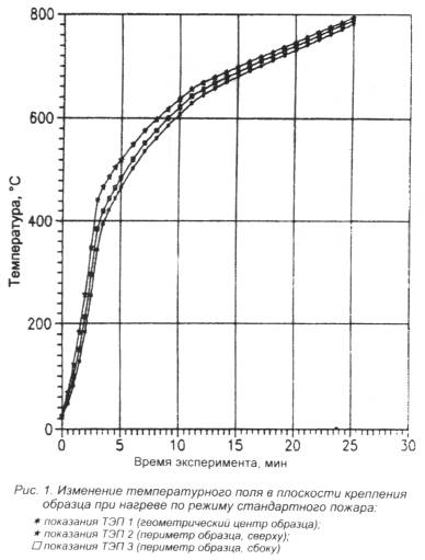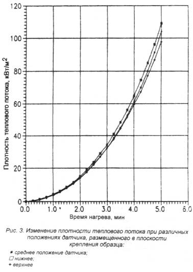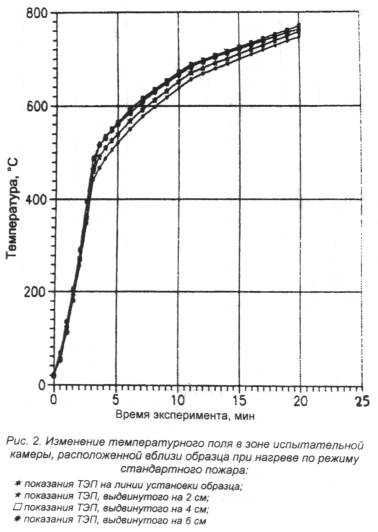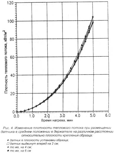 записка Целью разработки настоящей методики было совершенствование широко применяемого лабораторного метода исследования огнезащитных свойств вспучивающихся покрытий по металлу, что позволит более эффективно использовать его при создании новых огнезащитных составов и контроле их качества при производстве и применении. Как показал опыт, в этом случае целесообразно применять именно лабораторные методы исследования, позволяющие испытывать образцы небольшого размера, избежать значительных материальных затрат, повысить производительность установки, с последующим проведением крупномасштабных испытаний. Предлагаемая методика позволяет решит эти вопросы, а также дает возможность проводить сравнительную оценку теплоизолирующих свойств различных огнезащитных покрытий, определять их изменение после ускоренного старения покрытий. Она может применяться также для контроля теплоизолирующих свойств при производстве составов. В качестве основного критерия оценки огнезащитных свойств, как и в ранее действующей методике, предлагается использовать время прогрева металлической подложки образца (металлическая пластинка с огнезащитным покрытием) до критической температуры (500°С для стали) при тепловом воздействии на него со стороны огнезащитного покрытия в экспериментальной камере, соответствующем температурному режиму "стандартного пожара". Настоящая методика вводится взамен "Инструкции по определению теплоизолирующих свойств вспучивающихся покрытий по металлу", изданной ВНИИПО в 1980 г. Необходимость совершенствования метода была обусловлена рядом задач. Основные из них: - получение более достоверных результатов испытаний и повышение их воспроизводимости; - увеличение степени автоматизации эксперимента; - уменьшение времени, затрачиваемого на подготовку эксперимента; - расширение сведений об огнезащитных свойствах покрытий. Конструкция установки обеспечивает более стабильные условия теплового воздействия, исключающие значительные градиенты температуры и теплового потока в рабочей зоне камеры (печи), где происходит вспучивание огнезащитного покрытия. В качестве подтверждения этого приводятся экспериментальные данные изменения температуры (рис. 1 и 2) и теплового потока (рис. 3 и 4) в различных координатах как на поверхности образца, так и в удаленных от нее в сторону теплового источника. Это позволяет устранить эффект неконтролируемого возрастания интенсивности теплового воздействия на огнезащитное покрытие при его вспучивании (то есть по мере приближения к источнику нагрева), что наблюдалось при использовании прежней установки. На новой установке реализовано автоматическое воспроизведение заданного режима нагрева и фиксирование результатов экспериментов, снижены допустимые интервалы отклонения от температурного режима стандартного пожара (3 - 5% по сравнению с 10 - 15% на ранее используемой установке), сокращено время, затрачиваемое на подготовку эксперимента за счет исключения длительного предварительного прогрева печи. Эксперимент начинают при температуре печи, соответствующей температуре окружающей среды. Кроме испытаний образцов огнезащитных покрытий по температурному режиму стандартного пожара разработанная установка позволяет воспроизводить температурные режимы для изучения поведения