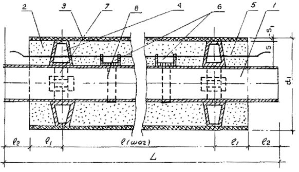 дистанционного контроля (ОДК) состояния теплоизоляции из ППУ; 6 - держатели