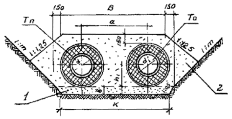 двухтрубной бесканальной прокладки: Тп - подающий