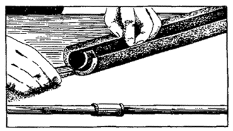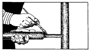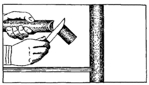 Рис. 3 б. Установка оболочек с вырезанными углами (2´45°) на колено. Надрезы проклеивают и сжимают или закрепляют с помощью зажимов