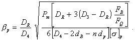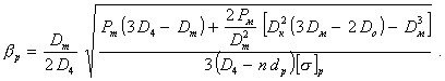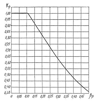 2.1.2. Диаметр перфорированной части трубной решетки следует определять по формуле 2.1.3. Величину коэффициента Кр в зависимости от толстостенности трубной решетки bр принимают в соответствии с черт. 3. 2.1.4. Величину коэффициента толстостенности трубной решетки следует определять по формуле 2.1.5. Расчетную толщину трубной решетки следует принимать наибольшей из двух значений, определенных по формулам (1), (2). 2.1.7. Исполнительная толщина трубной решетки должна удовлетворять условию: 2.2. Теплообменные аппараты с компенсатором на корпусе межтрубного пространства (Рт > Pм). 2.2.1. Толщину трубной решетки следует рассчитывать по формулам: 2.2.2. Диаметр перфорированной части трубной решетки следует определять по формуле (3). 2.2.3. Величину коэффициента Кр следует определять в соответствии с черт. 3. 2.2.4. Величину коэффициента толстостенности трубной решетки следует определять по формуле 2.2.5. Расчетную толщину трубной решетки следует принимать наибольшей из двух значений, определенных по формулам (6), (7). 2.2.6. Исполнительная толщина трубной решетки должна удовлетворять условию (5) и требованию п. 2.1.6. 2.3. Проверка прочности крепления труб в решетке. 2.3.1. Условие прочности крепления труб в решетке 2.3.2. Осевое усилие в трубе для теплообменных аппаратов с U-образными трубами, с компенсаторами на трубах следует определять по формуле где