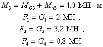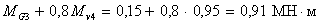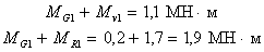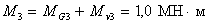 для определения M3 вычисляем значения MG3 + Mv3 = 0,15 + 0,85 = 1,0 МН·м;