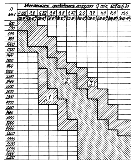 Обязательное РАСЧЕТ ПРИВЕДЕННЫХ НАГРУЗОК И ВЫБОР ОПОРЫ1. Формулы для определения приведенных нагрузок 1.1. Qmax - максимальная приведенная нагрузка в МН (кгс), принимается равной большей из двух значений где М1 и F1 - расчетный изгибающий момент в МН·м (кгс·см) и расчетное осевое сжимающее усилие в МН (кгс), действующие на аппарат в месте присоединения опорного кольца в рабочих условиях; М2 и F2 - то же в условиях испытания. Величины М1, М2, F1, F2 определяются по ГОСТ 24757-81. 1.2. Qmin - минимальная приведенная нагрузка в МН (кгс) определяется по формуле: где М3 и F4 - расчетный изгибающий момент в МН·м (кгс·см) и расчетное осевое сжимающее усилие в МН (кгс), действующие на аппарат в месте присоединения опорного кольца в условиях монтажа, определяются по ГОСТ 24757-81. 1.3. Допускается принимать толщины элементов, количество и диаметр фундаментных болтов по табл. 1, 2, 3 при величинах Qmax и Qmin , превышающих, соответственно, ближайшие табличные значения не более, чем на 10 %. 2.