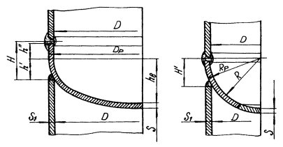 Черт. 1. 5. Для разности температур в днище tд и допускаемой в месте стыка tc