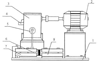 циклов; 5 - эксцентрик; 6 - испытываемый образец; 7 - подвижной захват; 8 -