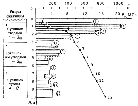 грунтов в пределах 1-20 ударов, исходя из глубины
