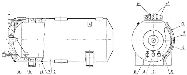 с эллиптическими днищами (1), наружного кожуха (2), системы трубопроводов,