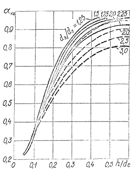 определяем по графику черт. 23. Для значений: h/dC=0,4 и d3/dC=2,5 Значение коэффициента расхода