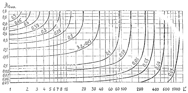 входном сечении трубопровода определяем по графику черт. 24 в зависимости от L'=16,2 м и lВЫХ=0,012. В рассматриваемом случае