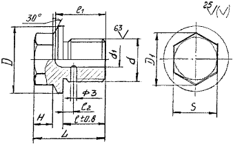 г/см3. Пример условного обозначения пробки типа 1 с диаметром резьбы М27×1,5 из стали 20: Пробка 1-М27×1,5-20 АТК 26-18-9-94 3.2 Конструкция и размеры