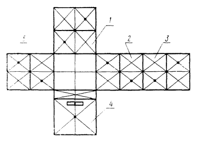 задняя стенка; 2 - правая стенка; 3 - пол; 4 - передняя стенка; 5 - левая