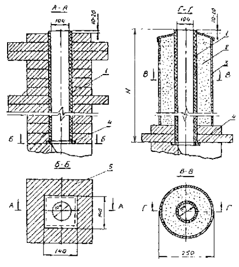 Противопожарные разделки дымовых каналов в междуэтажных и чердачных