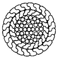 Дата ведения 01.01.75 1. Настоящий стандарт распространяется на стальные закрытые несущие канаты с двумя слоями зетобразной проволоки и сердечником из круглых проволок с точечным касанием типа ТК конструкции 1+6+12 и 1+6+12+18.
