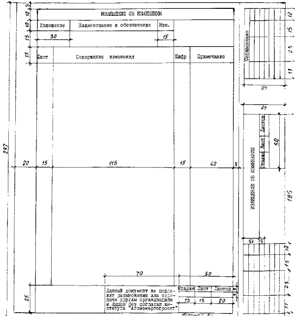 изменений по форме 3 (на поле чертежа) и по форме 2 (на отрезной части), где в