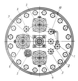 - спецгайка, 7 - вилка, 8 - кольцо, 9 -