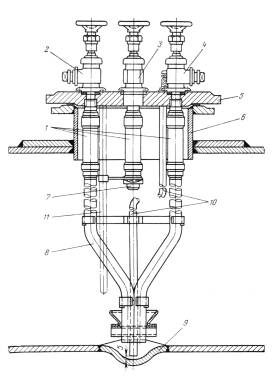 цистерны сжиженными газами служат вентили 2 и 3 (см. рис. 2). Трубка вентиля 2, маховик которого