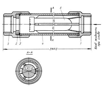 - крышка, 4 - клапан, 5 - пружина, 6 - шайба