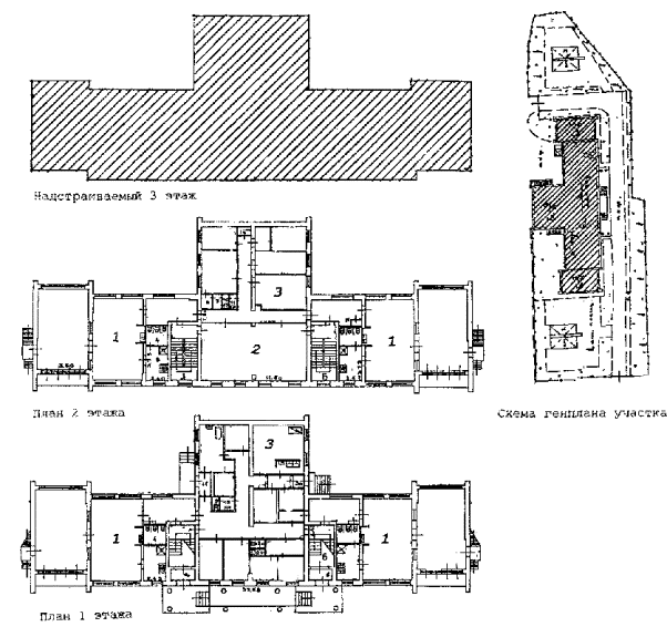 здания предполагает надстройку третьего этажа над двухэтажными блоками с