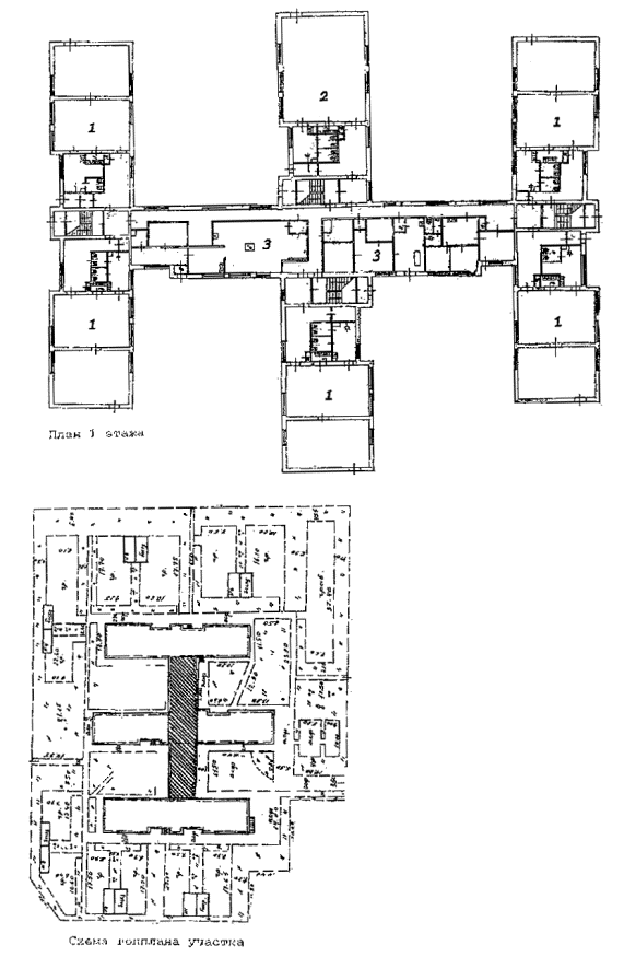 реконструкции 1 - групповая ячейка 2 - бассейн 3 - административные и