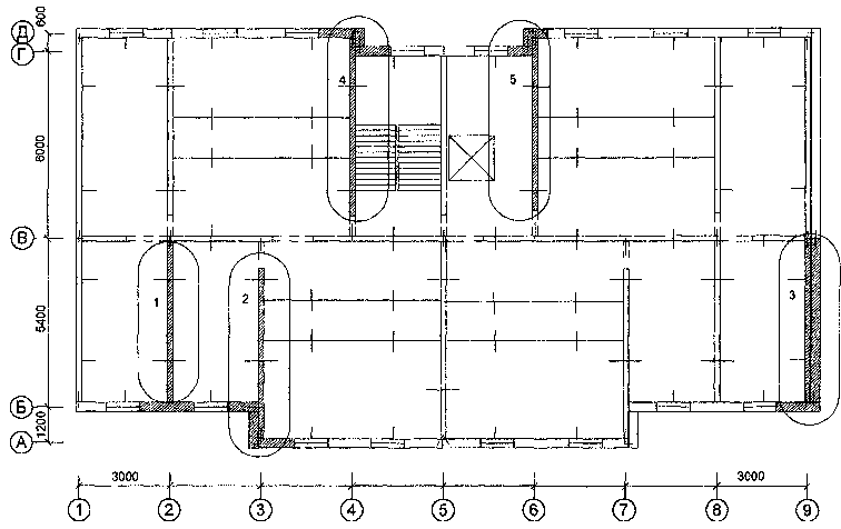 вертикальными конструкциями из-за наличия дверных проемов (см. схемы 2, 4, 5 на