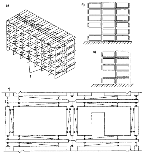 проемами или без проемов), соединенных между собой сосредоточенными связями,