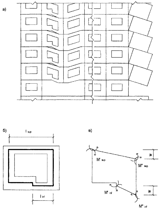 или из-за частичного отсутствия связей через перекрытия (стены, примыкающие к