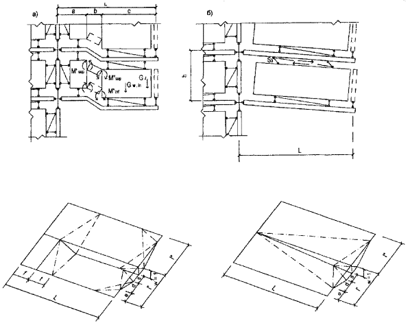 Излом плит перекрытий и наружных стен аналогичен второму механизму обрушения.