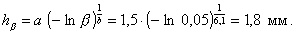 Видим, что подученная величина hmax несколько выше, чем максимальная из измеренных величин - 2,0 мм. 8. Глубину hb на 5 % поверхности (b = 0,05), определяем по формуле (7)
