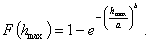 ПОВЕРХНОСТНОМ РАЗРУШЕНИИ В соответствии с ГОСТ 27.003-83 и ГОСТ 27.103-83 критерии отказов и предельных состояний изделий должны устанавливаться в технических условиях (стандартах ТУ) с целью достоверного определения их технического состояния. Критерии отказа - это совокупность признаков, характеризующих неработоспособное состояние изделия. Критерием предельного состояния является совокупность признаков, при которых использование по назначению должно быть прекращено (или невозможно) и изделие должно направляться в капитальный ремонт или списываться (сниматься с эксплуатации). Предельным состоянием оборудования, подвергающегося при эксплуатации коррозионно-эрозионному разрушению, является уменьшение толщины его стенок до предельной величины, ниже которой не обеспечивается необходимый запас его несущей способности. Глубина отдельных локальных разрушений (исключая трещины) может значительно превышать среднюю глубину разрушения (вплоть до сквозного разрушения) и не нарушать несущей способности аппарата. Однако появление сквозных разрушений нарушает работоспособность аппаратов, т. е. является критерием их отказов, а если работоспособность аппаратов после таких отказов не подлежит восстановлению, то и критерием их предельного состояния. Кроме того для высоконагруженного оборудования возникновение даже отдельных дефектов поверхности может явиться причиной возникновения и развития трещин. Поэтому для такого оборудования должна устанавливаться предельно допустимая величина поверхностных дефектов, которая является критерием его предельного состояния. Таким образом при оценке надежности оборудования, подвергающегося коррозионно-эрозионному разрушению, в качестве предельного состояния оборудования принимается разрушение определенной доли (b) поверхности на предельно допустимую глубину (величину прибавки на коррозию и другие запасы). В качестве критерия отказа принимается возникновение сквозного разрушения стенки аппарата (или покрытия), что соответствует достижению глубины (hmax) разрушения в одной из точек поверхности толщины стенки аппарата или покрытия. Этот критерий одновременно является и критерием предельного состояния оборудования, если после отказа его восстановление невозможно или нецелесообразно. К разделу 2Неравномерность разрушения поверхности характеризуется функцией распределения глубин разрушения F(h), см. черт. 1. Числовое значение этой функции определяет долю поверхности, имеющей глубину разрушения меньше, чем h. Специальные исследования (Отчет № гос. рег. 01840031823 «Разработка рекомендаций по выбору материалов с учетом требований надежности». М.: НИИхиммаш, 1985) показали, что распределение глубин разрушения по поверхности подчиняется закону Вейбулла (без сдвига), функция которого имеет вид: