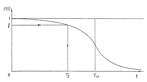 ОПРЕДЕЛЕНИЕ ГАММА-ПРОЦЕНТНОГО РЕСУРСА ЭЛЕМЕНТОВВеличины ресурсов элементов (и изделий) одной и той же партии не имеют равных значений даже при строгом поддержании нагрузки на одном и том же уровне, а подчиняются некоторому статистическому распределению, группирующемуся около некоторой величины, называемой средним ресурсом Тср (см. черт. 1). В соответствия с ГОСТ 13377-75 гамма-процентным (g %) ресурсом до отказа элемента называется такой ресурс, которой имеет или превышает гамма процентов элементов данного типа. Для одного элемента это означает, что вероятность достижения элементом указанного ресурса составляет гамма процентов. Величина g выбирается равной 1,00; 0,99; 0,95; 0,90; 0,80; 0,50 в зависимости от ответственности элемента и его стоимости. При выборе повышенных значений уменьшается межремонтный период и возрастают затраты на ремонты. В общем случае определение g % ресурса может быть осуществлено по кривой вероятности распределения ресурса элемента (см. черт. 1). Определение g % ресурса элемента по кривой P(t). Черт. 1. При нормальном распределении ресурса элемента: