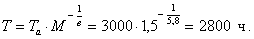 Если необходимо сохранить ресурс, равный 3000 ч, то следует принять какие-то меры, например, уменьшить удельную нагрузку на изнашиваемую поверхность путём увеличения ширины кольца. Пример 2. По результатам эксплуатации теплообменников с развальцованными трубами известно, что основной причиной их отказов является нарушение герметичности в местах развальцовки труб. При этом известно, что наработка на отказ теплообменника, имеющего 200 развальцовок, составляет 1000 ч, а коэффициент вариации равен 0,3. Вновь сконструированный теплообменник имеет 100 развальцовок. Необходимо определить его наработку на отказ. Решение. В соответствии с табл. 2 определяем М = 100/200 = 0,5. По табл. 3 для коэффициента вариации 0,3 определяем параметр в = 3,7. По формуле (1) определяем: