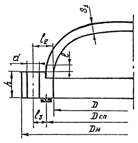 Черт. 3. При расчете по настоящему РД следует учитывать все возможные сочетания давлений в трубном и межтрубном пространствах, которые могут иметь место при пуске, в рабочих условиях, при промывке или испытаниях аппарата, с целью определения экстремальных значений расчетных характеристик для каждого из элементов плавающей головки. Термины и условные обозначения соответствующих им физических величин приведены в. обязательном приложении 1. Пример расчета сферической неотбортованной крышки приведен в приложении 2. 1. УСЛОВИЯ ПРИМЕНЕНИЯ РАСЧЕТНЫХ ФОРМУЛРасчетные формулы действительны при соблюдении условий: 1) для сферических неотбортованных крышек