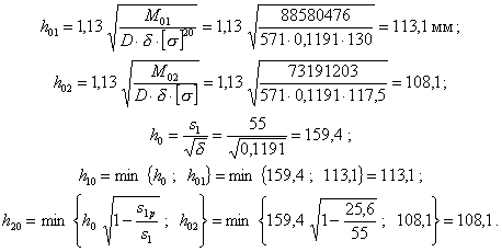 4.2.1.2. Расчетный изгибающий момент в рабочих условиях, Н·мм: 1) для крышек с полуэллиптическими днищами