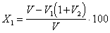 между 100 и суммой объемных долей примесей по формуле Х = 100 - (Х1