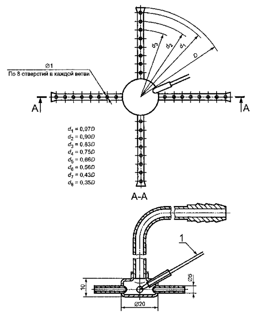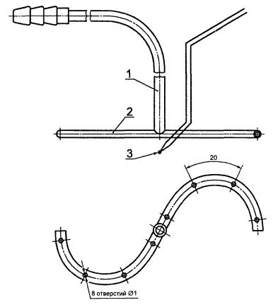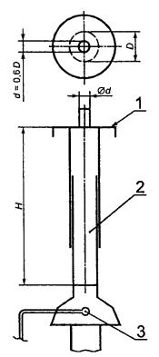 измерения температуры продуктов сгорания для дымохода диаметром более 100 мм 1 - медная трубка Æ 6 мм; 2 - медная трубка Æ 4 мм; 3 - термопара Рисунок И.4 - Устройство для отбора проб и
