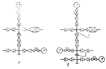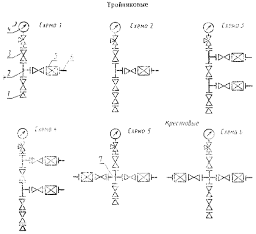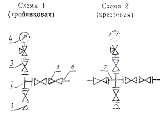 ответный фланец; 7 - крестовина Черт. 1 Типовые схемы нагнетательных елок 1 -