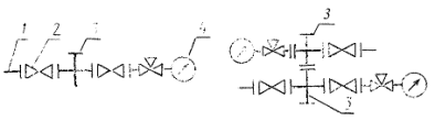 трубной головке; 2 - тройник; 3 - запорное устройство; 4 - манометр