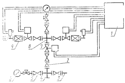 манометр с запорно-разрядным устройством; 5 - дроссель; 6 -