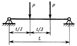 где s - величина заданных напряжений, МПа; Е - модуль упругости, МПа; l - расстояние между опорами, м; s - толщина образца, м. Для выявления сопротивляемости коррозионному растрескиванию сварного соединения напряжения растяжения в образцах создаются по четырехточечной схеме изгиба с расположением сварного соединения в центральной зоне (черт. 2). Черт. 2 Стрелу прогиба (f2) в метрах вычисляют по формуле