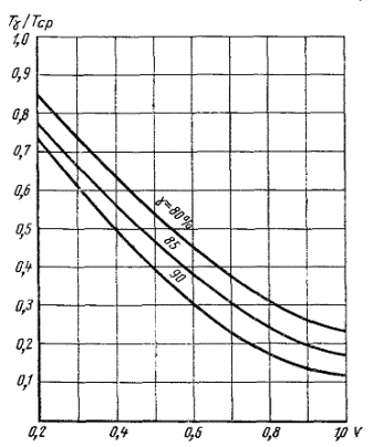 Черт. 3 Зависимость отношения Tg/Tср от коэффициента вариации V и вероятности g для закона распределения Вейбулла наработок до предельного состояния