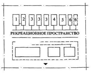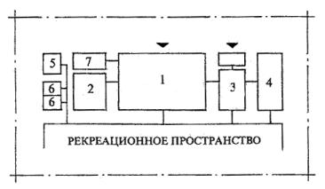 Функционально-планировочная схема группы входных и обслуживающих помещений 1 - вестибюль,