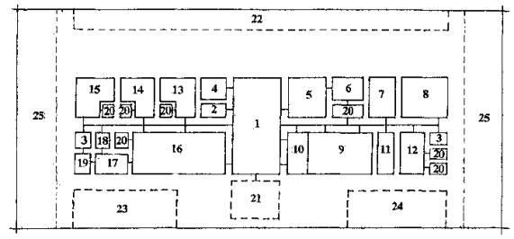 Тренажёрный зал. 18. Душевая. 19. Раздевальная. 20. Подсобные помещения. 21. Сцена