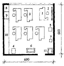 мастерской по обработке металла Экспликация оборудования 1 - шкаф для книг и пособий; 2 - муфельная печь; 3